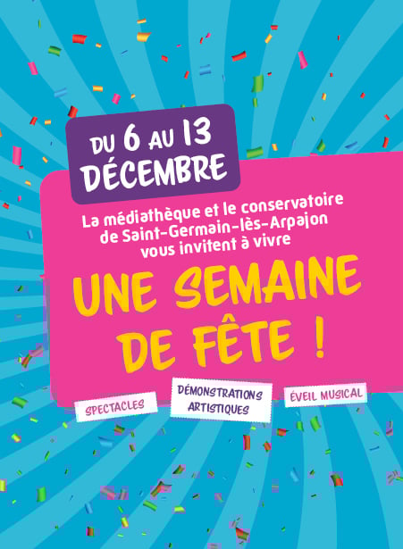 Du 6 au 13 décembre, la médiathèque et le conservatoire de Saint-Germain-lès-Arpajon vous invitent à vivre une semaine de fête !
